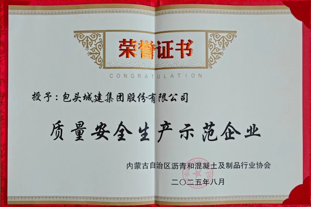近日,在内蒙古自治区沥青和混凝土及制品行业协会一届三次理事会暨表彰大会上,我司客户包头城建集团股份有限公司荣膺“质量安全生产示范企业”称号。我司润天智科为其量身打造的沥青一体式混合料搅拌站,为这一成就提供了重要设备与技术支撑。特此祝贺包头城建集团!